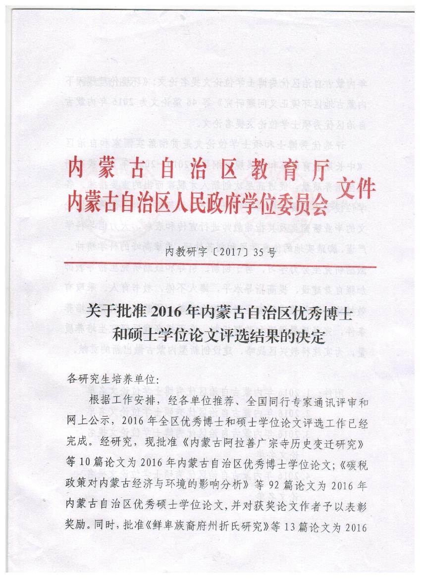 附件:1、2016年内蒙古自治区优秀博士论文名单优秀博士.xls