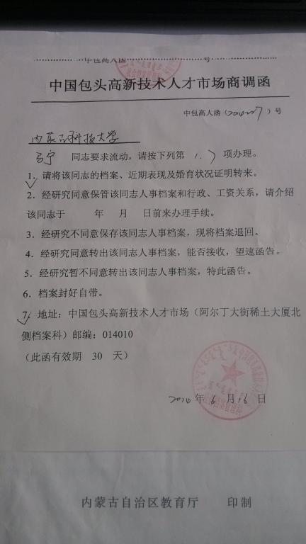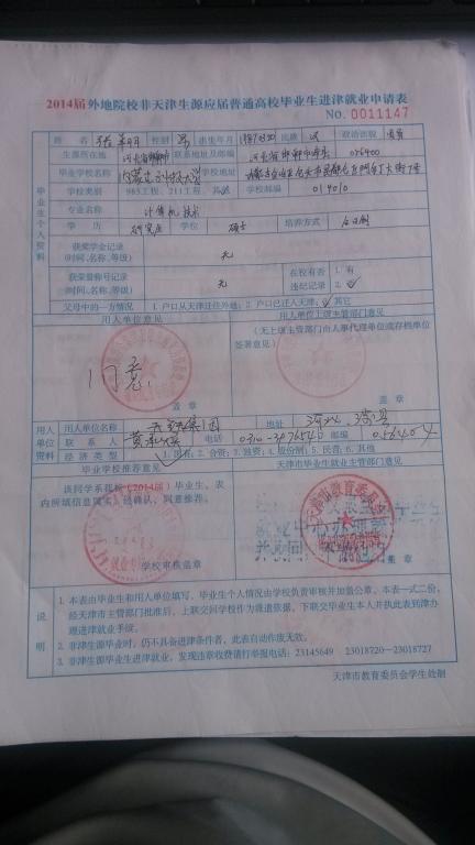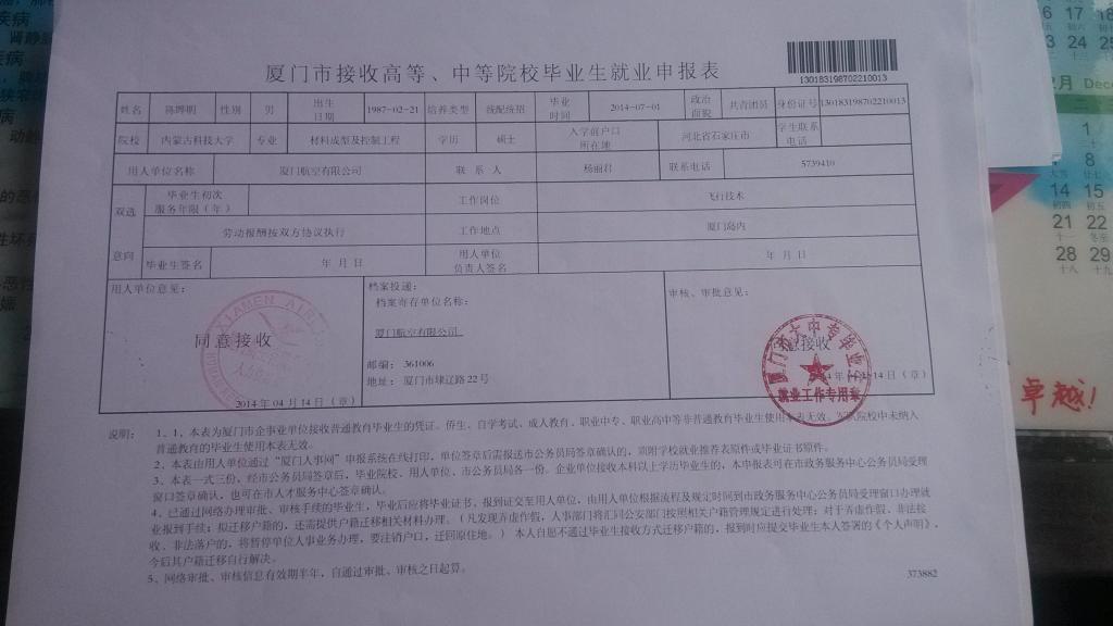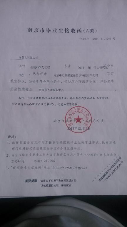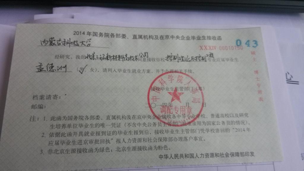 2、在北京、天津、杭州、南京、广东、厦门等地就业的同学,就业材料除就业协议书等材料外,还需向单位索要以下材料,一并上交。