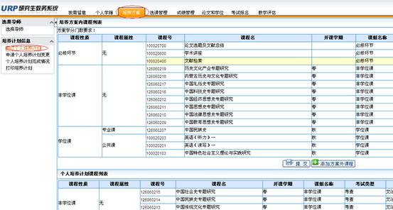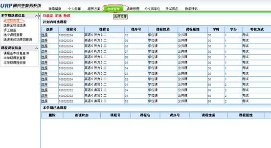 个人培养计划制定完成后,点击选课管理中左列本学期选课开始选本学期的课程,如图: